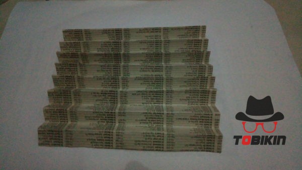 langkah 5, kelima setelah semua bentuk lipatan kipas merekat, lakukan seluruh langkah pada semua bentuk lipatan kipas, jika sudah tempel double tipe pada setiap ujung bentuk kipas dikanan ataupun dikiri sisi ujung kipas