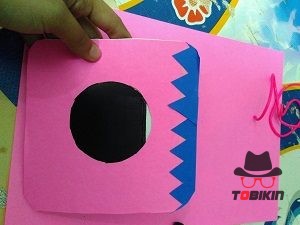 5. Tempelkan kertas yang dipotong lingkaran dan kertas yang tengahnya dipotong, lihat gambar dibawah ini