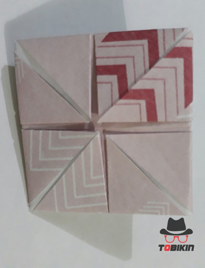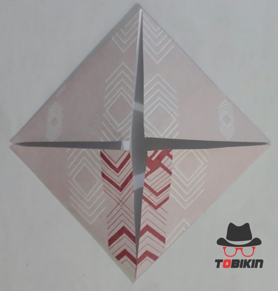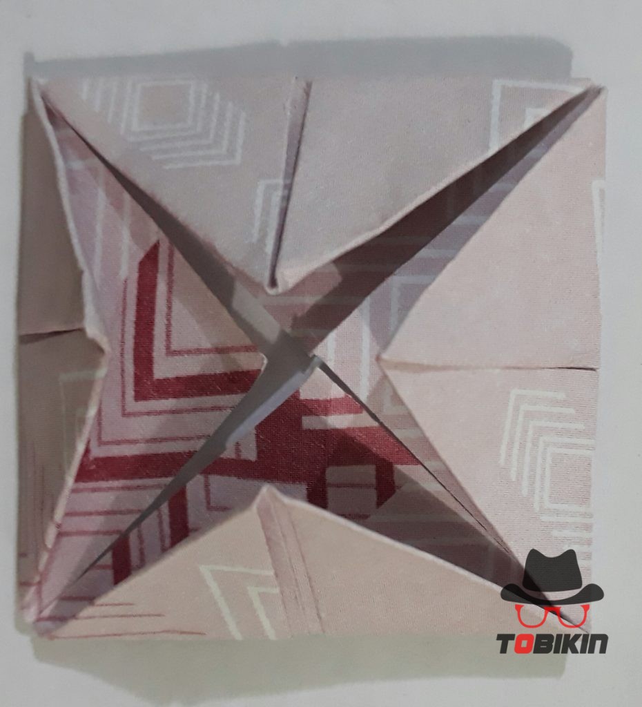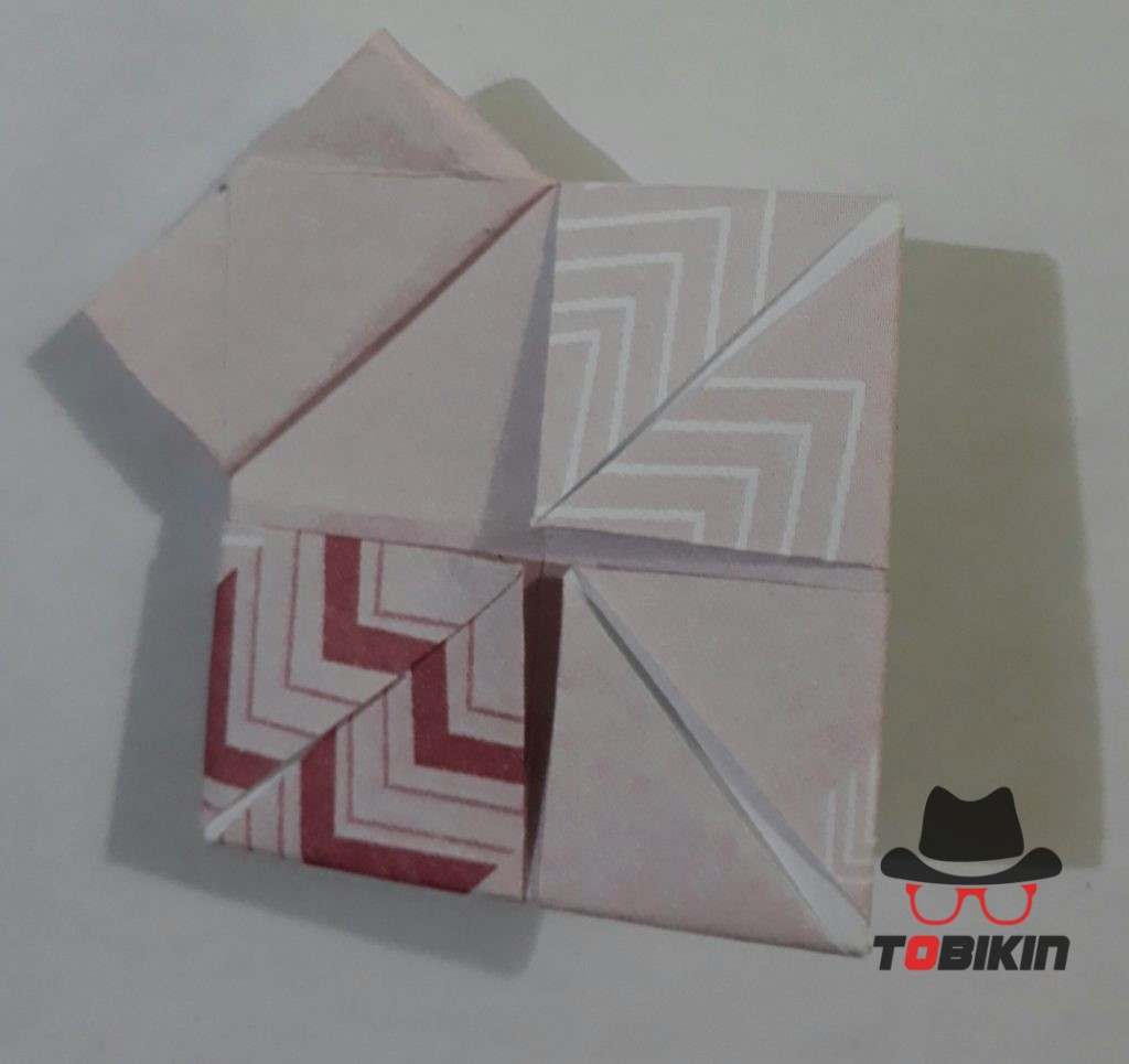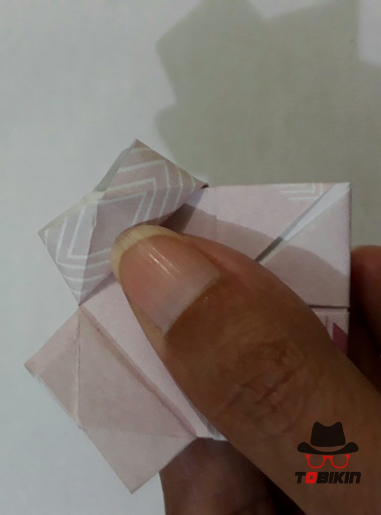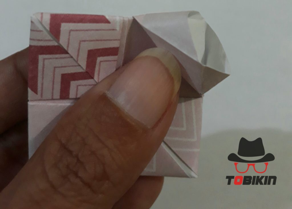 Dorong salah satu bagian persegi kecil ke arah luar hingga terbuka. Ini menjadi mata katak.