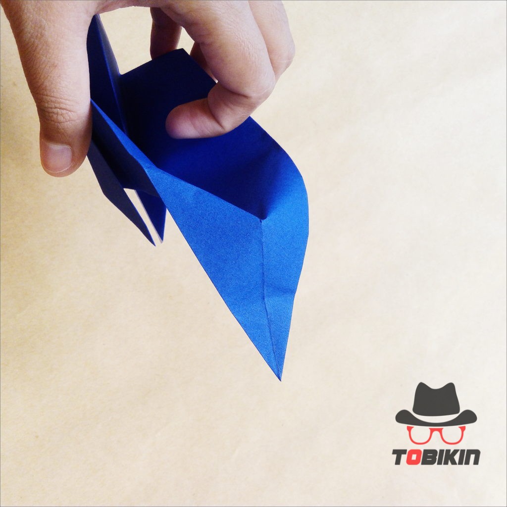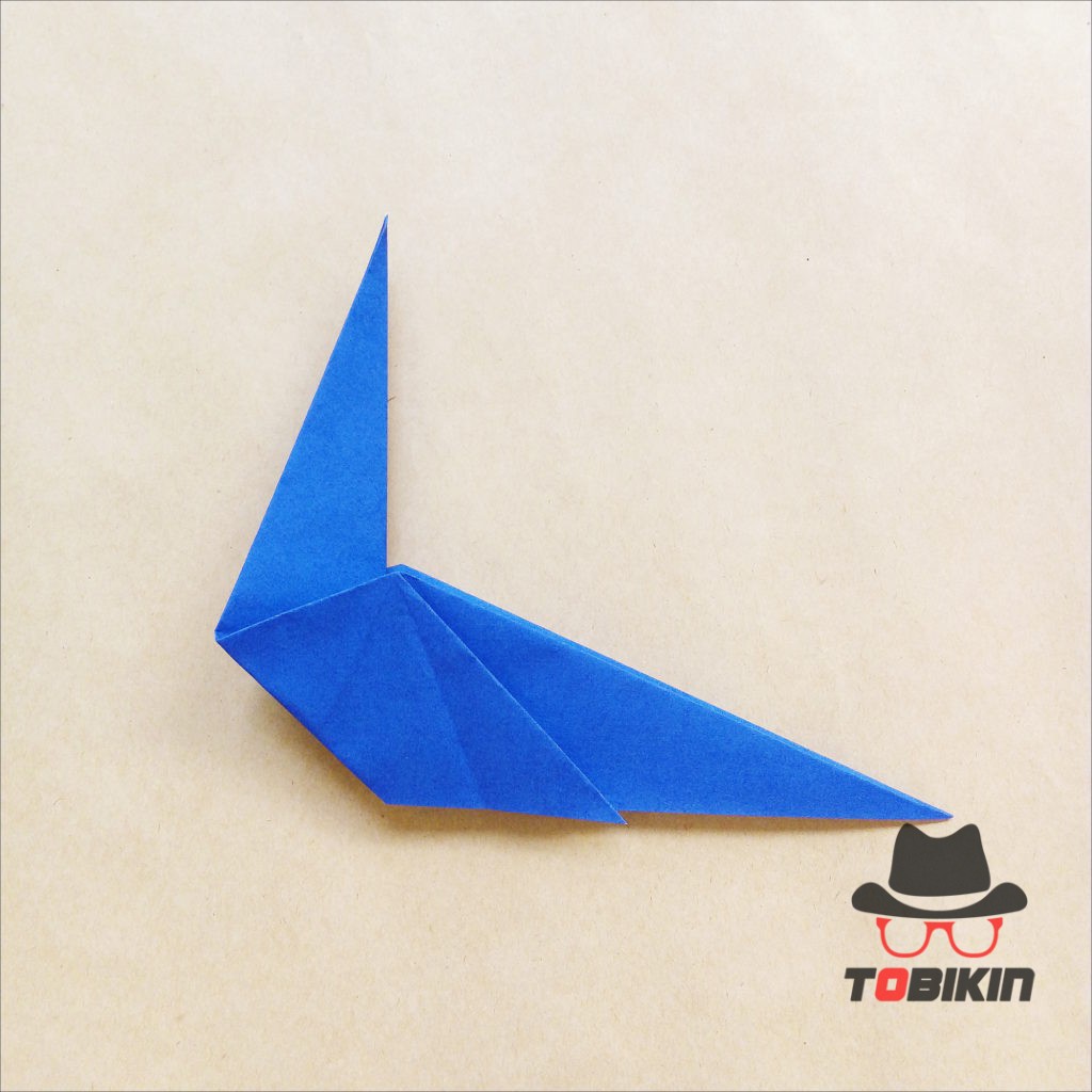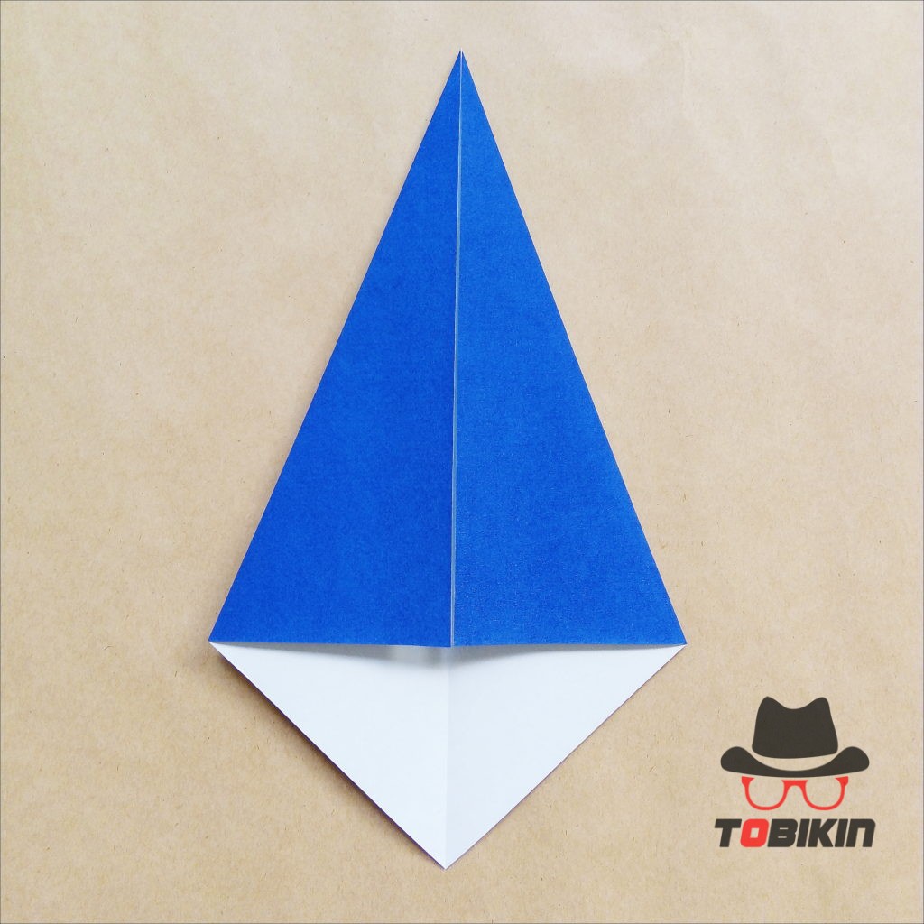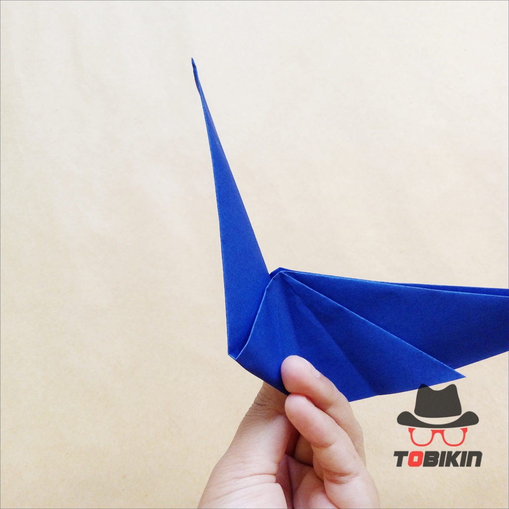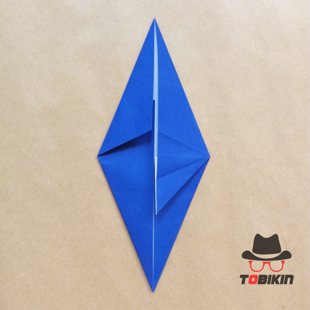 Buka bagian yang akan dijadikan leher lalu lipat kedalam seperti gambar di bawah ini dan jadilah leher kuda. (Tahap sampai pembuatan kepala mirip saat membuat origami bangau)