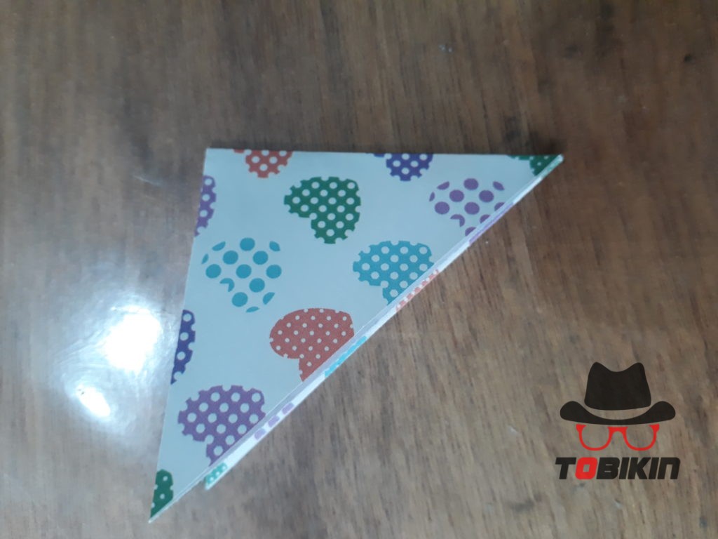 Lipat bagian atas segitiga kecil membentuk cuping telinga tikus.