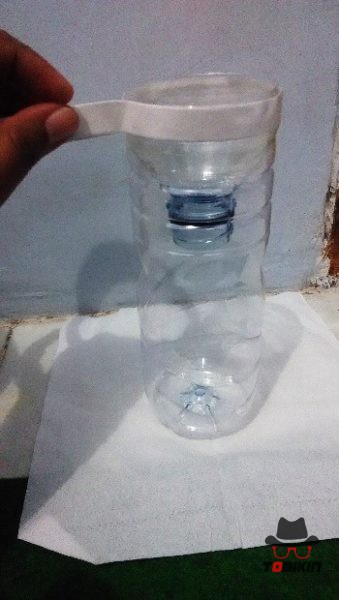 Setelah itu, buka tutup botol plastik tersebut dan susun kedua potongan botol seperti pada gambar di bawah ini :