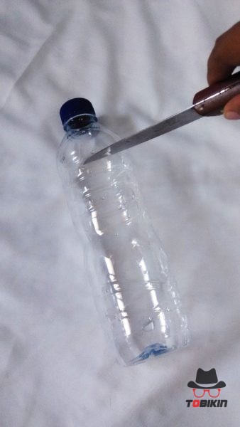 Pertama-tama menyiapkan botol plastik 600 ml dalam kondisi label merk sudah dilepaskan.